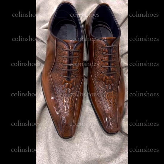 Quiet Luxury Crocodile Embossed Pointed Toe Oxfords